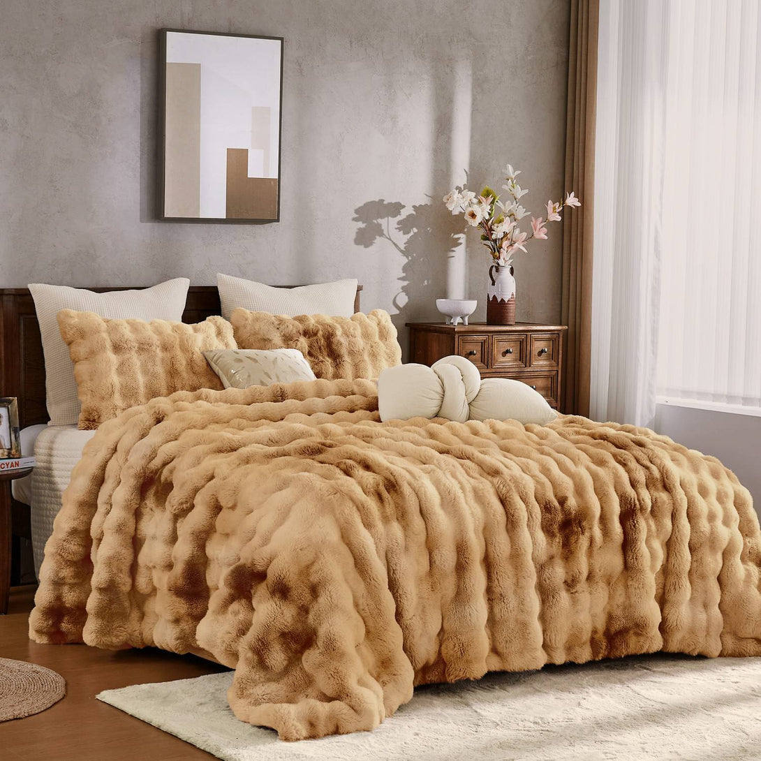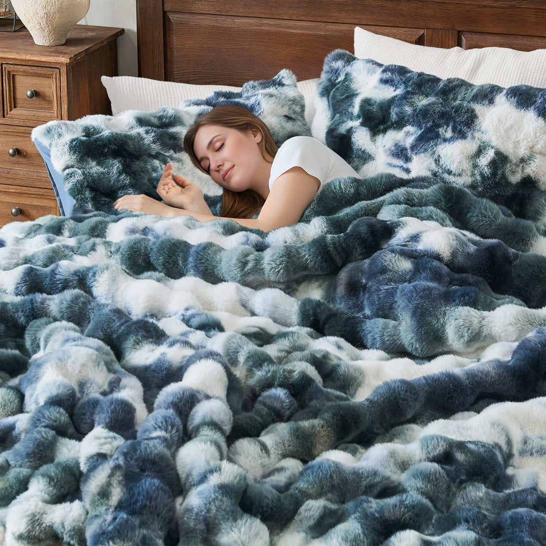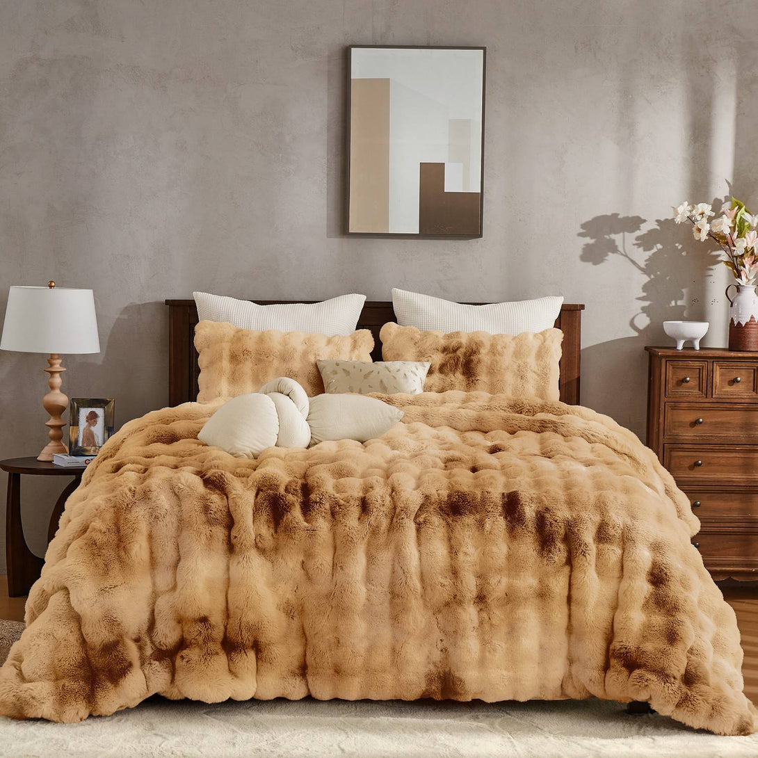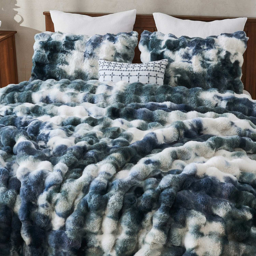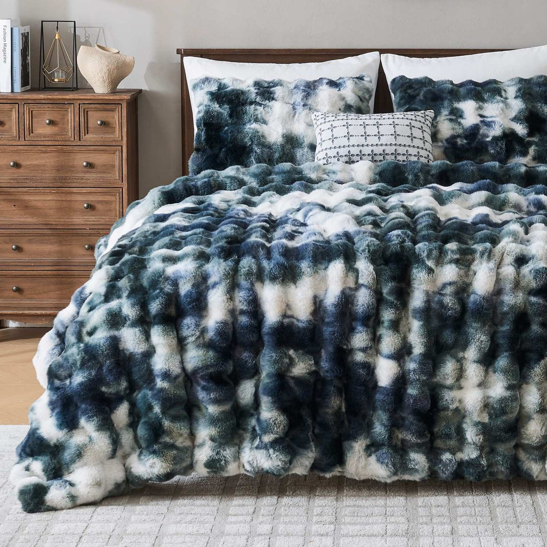 Wrap yourself in luxurious softness with our Wonderful Faux Rabbit Fur Comforter Set. Crafted with ultra-plush tie-dye velvet bubbles, this set mimics the cozy look and feel of rabbit fur—without any animal harm. Backed with a smooth, brushed microfiber and filled with lightweight polyester, it offers cloud-like warmth for all-season comfort.