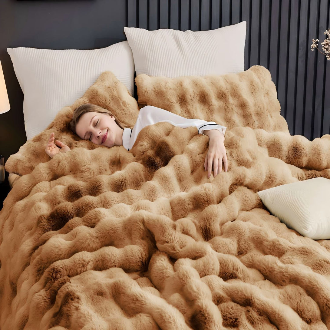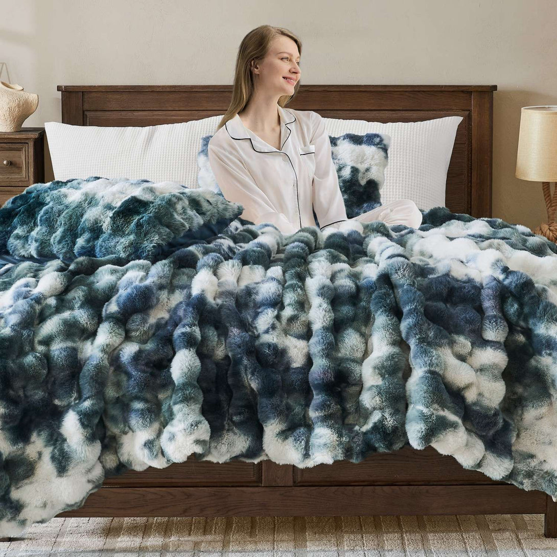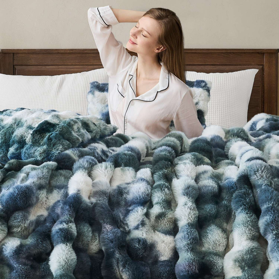 Dual-Sided Design — Plush faux rabbit fur on the front, silky brushed microfiber on the reverse, for balanced comfort.